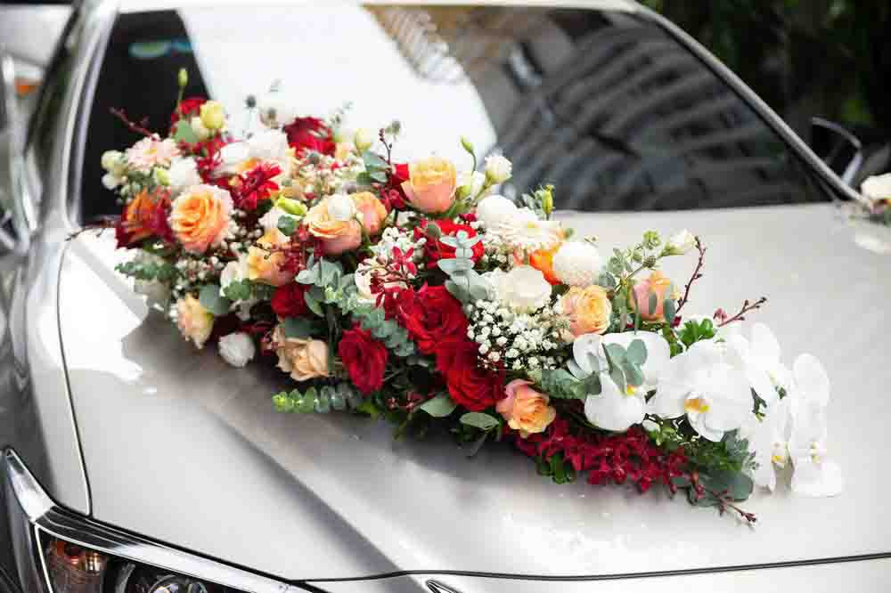 Để lựa chọn phong cách trang trí cho xe cưới loại phổ thông, bạn cần chú ý đến việc lựa chọn tông màu phù hợp với gam màu chính của đám cưới, từ phông rạp, hoa cầm tay, đến hoa cài áo chú rể...
