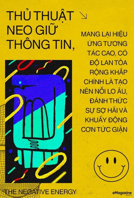 Mục tiêu hàng đầu của những cá nhân sử dụng mạng xã hội như một phương tiện kiếm sống là tìm kiếm sự quan tâm và được nhắc đến, càng nhiều càng tốt. Nếu các ngôi sao giải trí và thể thao có sẵn lực hút tự thân, thì không ít KOL, hot facebooker/ Instargramer sử dụng các thủ thuật lôi kéo sự tò mò chú ý của công chúng mạng. Một bộ ảnh xinh tươi, dòng trạng thái lạc quan, một thông tin nghiêm túc sẽ sớm bị nuốt chửng trong dòng chảy news feed. Thủ thuật neo giữ thông tin, mang lại hiệu ứng tương tác cao, có độ lan tỏa rộng khắp chính là tạo nên nỗi lo âu, đánh thức sự sợ hãi và khuấy động cơn tức giận.