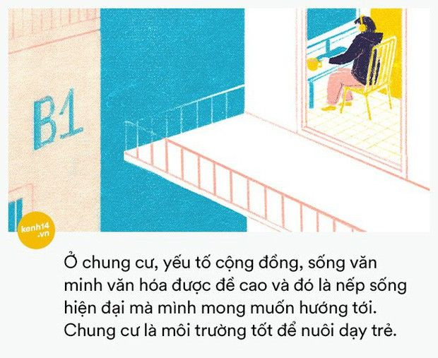 Với chị Trần Phan Khánh Quỳnh, chung cư là nơi chị hình thành những nếp sống mới, những thói quen mới và gặp gỡ được nhiều người mới. Với các cộng đồng được thiết lập theo sở thích, nhiều người có thể dễ dàng san sẻ những thú vui, họp mặt và chia sẻ kinh nghiệm như: cộng đồng trồng cây, cộng đồng chơi cá cảnh, chơi tennis hay hội độc thân, hội các bà mẹ bỉm sữa… “Ở chung cư, yếu tố cộng đồng, sống văn minh văn hóa được đề cao và đó là nếp sống hiện đại mà mình mong muốn hướng tới. Chung cư là môi trường tốt để nuôi dạy trẻ”.