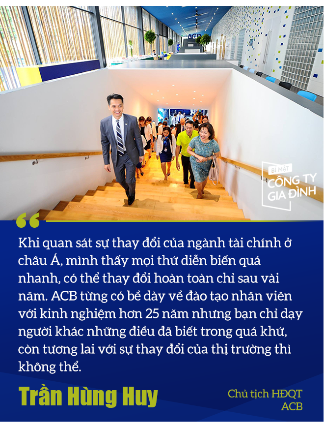 Trung tâm đào tạo (Training Center) của ACB trên đường Mạc Đĩnh Chi (TPHCM) cũng được đổi tên thành Learning Hub, với không gian tiền sảnh được thiết kế giống như một thư viện, với nhiều chỗ cho nhân viên ACB có thể trao đổi với nhau. Giải thích thêm về Learning Hub, ông Huy nói: "Khi quan sát sự thay đổi của ngành tài chính ở châu Á, mình thấy mọi thứ diễn biến quá nhanh, có thể thay đổi hoàn toàn chỉ sau vài năm. ACB từng có bề dày về đào tạo nhân viên với kinh nghiệm hơn 25 năm nhưng bạn chỉ dạy người khác những điều đã biết trong quá khứ, còn tương lai với sự thay đổi của thị trường thì không thể. Đó là lý do cần phải đổi khái niệm từ Training Center thành Learning Hub".
