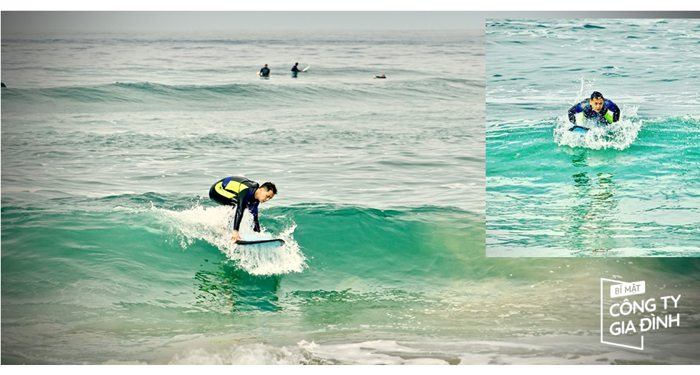 Lướt sóng là môn thể thao ưa thích của ông Trần Hùng Huy. Trong ảnh là lần lướt sóng của ông Huy tại Mỹ vào cuối tháng 7/2019