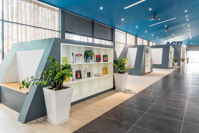 Phần tiền sảnh của Learning Hub ACB được thiết kế giống như một thư viện