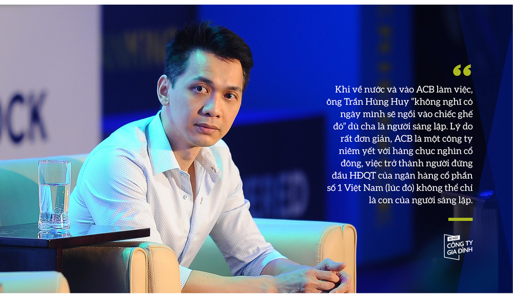 Còn với ông Trần Hùng Huy, chức Chủ tịch HĐQT ACB đến bất ngờ có thể coi như một cơ duyên hơn là "thừa kế". Và như ông Huy chia sẻ: "Từ nhỏ đến lớn, ba mẹ chưa từng gây áp lực cho mình về việc phải kế nghiệp gia đình mà luôn để cho Huy làm điều mình thích và được tự tuyết định. Tuy nhiên, ba mẹ cũng có nói thêm là tự quyết định và tự chịu trách nhiệm. Khi Huy chọn nghề ngân hàng là sở thích riêng và có thêm niềm tự hào về gia đình chứ không bị áp lực gì cả".
