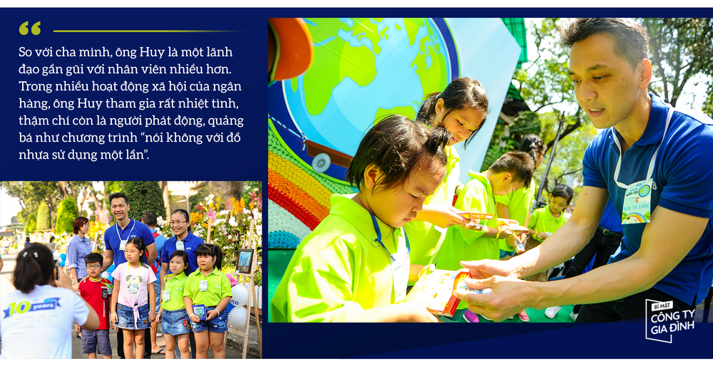 Nhưng so với cha mình, ông Huy là một lãnh đạo gần gũi với nhân viên nhiều hơn. Trong nhiều hoạt động xã hội của ngân hàng, ông Huy tham gia rất nhiệt tình, thậm chí còn là người phát động, quảng bá như chương trình "nói không với đồ nhựa sử dụng một lần". Vị chủ tịch ngân hàng trẻ nhất Việt Nam cũng rất tích cực với những chuyến đi thực tế tới các chi nhánh, lì xì cho nhân viên vào ngày đầu tiên đi làm sau Tết Âm lịch… Và như ông Huy chia sẻ về điểm mạnh của thế hệ lãnh đạo thứ 2 tại ACB: phối hợp với nhau tốt hơn.