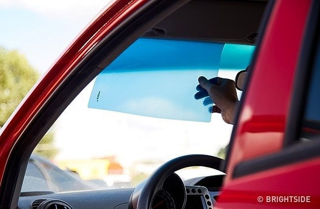 Tránh bị chói nắng: Mẹo này thường được phi công sử dụng. Để không bị chói mắt dưới ánh sáng mặt trời, đặt một miếng nhựa acrylic trong trên tấm chống nắng. Miếng acrylic rất dễ bám trên tấm chống nắng nhờ lực tĩnh điện và nó giúp bảo vệ mắt ta khỏi tia cực tím khá hiệu quả.