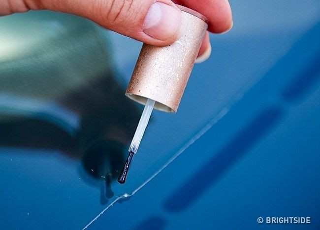 Sơn móng tay giúp che vết trầy xước: Chỉ cần phết một ít sơn móng tay cùng màu với thân xe, ta có thể che đi các vết trầy xước ngoài ý muốn. Đợi khi nó khô, ta chỉ cần mài nhẹ lớp sơn để trông nhẵn bóng hơn.