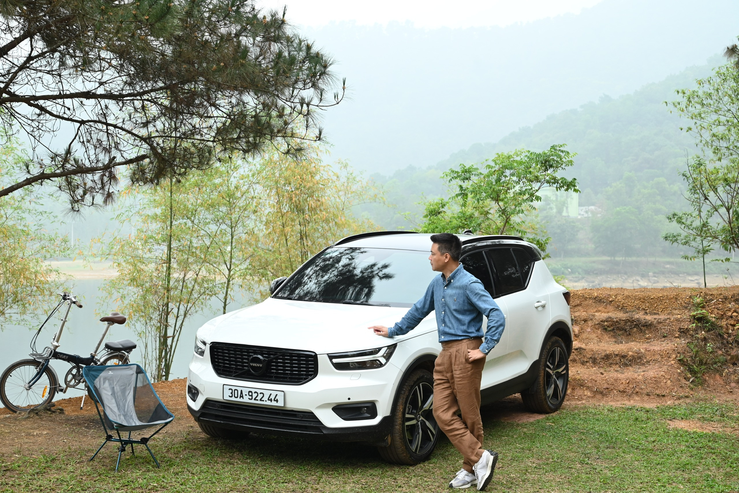 Tại bối cảnh Hồ Hoa Sơn, khi chiếc Volvo XC90 lướt lăn bánh qua triền cỏ mềm, ánh nắng phản chiếu lên thân xe bóng mượt, nội thất màu kem nhạt hoà quyện với cảnh núi rừng – cảm giác như một buổi triển lãm ngoài trời cho nghệ thuật thiết kế Bắc Âu.