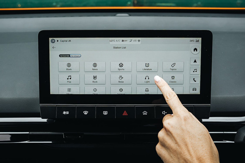 - Màn hình giải trí của xe ô tô MG có 5 chỗ được bố trí ở khu vực trung tâm, với kích thước lên đến 10 inch, thuận lợi cho tài xế quan sát, theo dõi và thao tác. Không những thế, màn hình giải trí còn có thể kết nối với Apple Carplay, Android Auto.