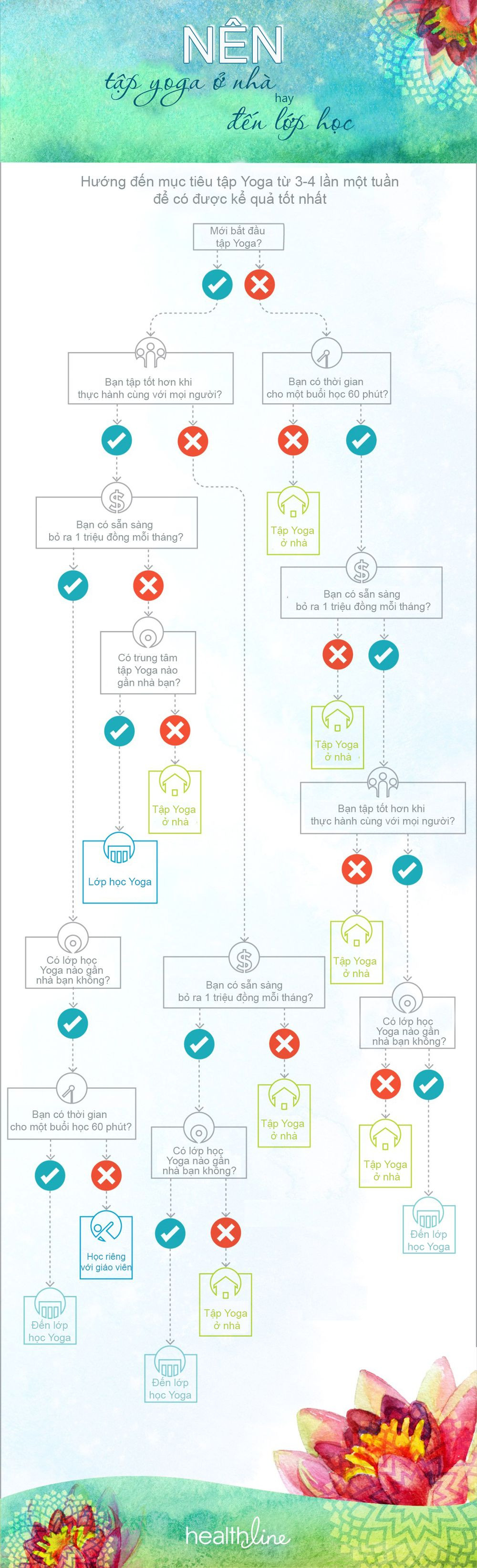Tự tập yoga tại nhà và đến lớp học đều có những ưu điểm cũng như nhược điểm riêng. Nếu đang phân vân thì bạn có thể nhìn vào gợi ý dưới đây để tìm ra câu trả lời: