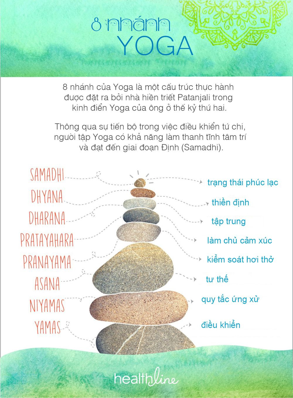 Hệ thống 8 nhánh là một phần không thể thiếu và được đánh giá cao của yoga. Ngày nay, chúng ta thực hành asana (chú trọng vào các tư thế vật lý) nhiều nhất. Asana yoga được phát triển vào đầu thế kỷ XX bởi Sri Tirumalai Krishnamacharya. Sau đó, 3 trong số các học trò nổi tiếng nhất của ông tiếp tục phát triển các phong cách đặc biệt của yoga, mỗi hình thái sẽ có đặc điểm và ưu điểm khác nhau.