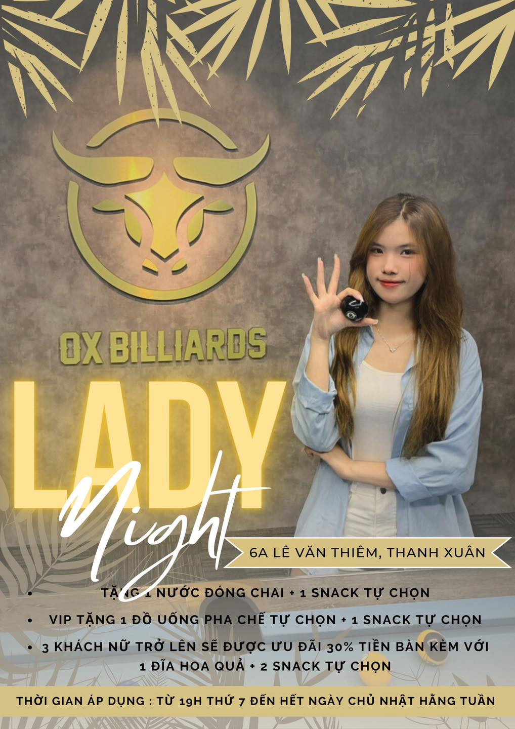 Không chỉ dừng lại ở đó, OX Billiards Club còn duy trì ưu đãi giảm 50% tiền bàn từ 00h đêm đến 11h sáng hôm sau, chỉ còn 45k/giờ. Đây là cơ hội tuyệt vời cho những tín đồ bi-a muốn trải nghiệm không gian chất lượng cao với chi phí vô cùng hợp lý.