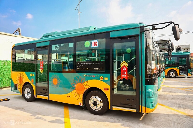 Diện mạo những chiếc xe điện dễ dàng nhận biết với màu xanh lá cây chủ đạo, phần thân và phía sau xe có màu vàng. Ảnh: VNExpress
