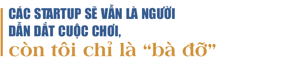 Thêm nữa, tôi vốn thích công nghệ nên cứ thấy công nghệ là táy máy tò mò, muốn tìm kiếm các startup công nghệ để gắn vào hệ sinh thái của mình và các bạn sẽ dẫn dắt cuộc chơi, tôi là "bà đỡ".