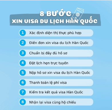 Toàn bộ quy trình, thủ tục xin visa du lịch Hàn Quốc được thực hiện qua 8 bước sau đây: